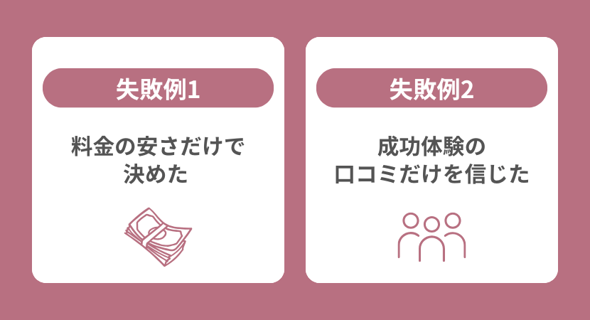 失敗例1:料金の安さだけで決めた → サポート不足で途中挫折